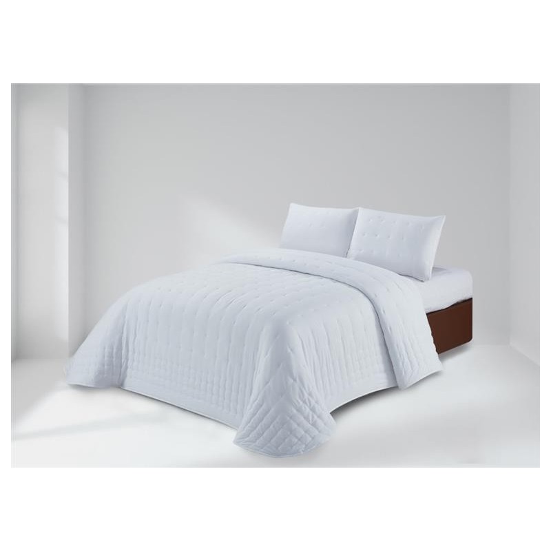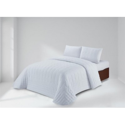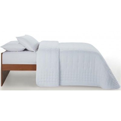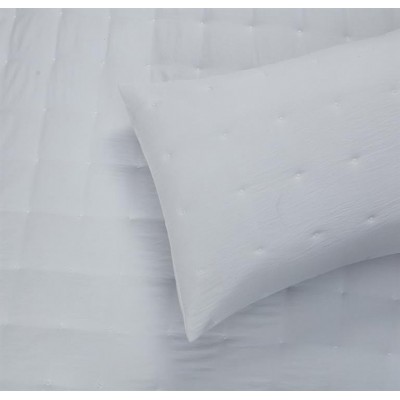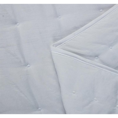 Conjunto de colcha de bordada de topitos y fundas de cojín a juego de 50X70. Guateada con un relleno ligero que le aporta relieve y su tejido lavado a la piedra un tacto muy suave y agradable. Este conjunto es ideal como colcha para entretiempo y verano.