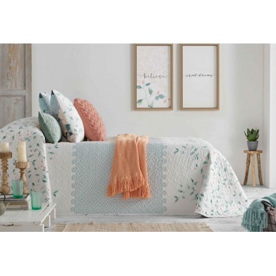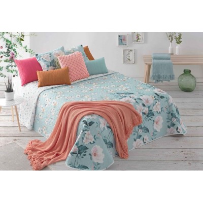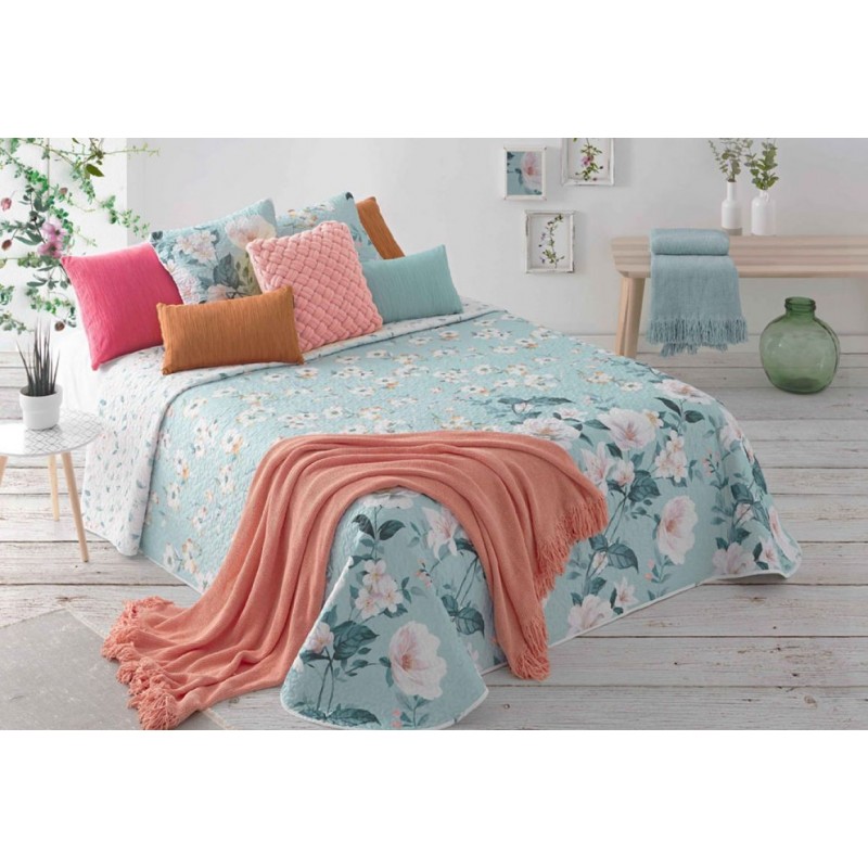 Colcha para cama de 90 cm, medida total 185x270 cm. Incluye 1 cojín de 50x70 cm a juego.