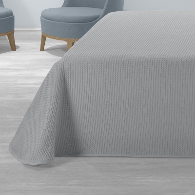 Tejido 100% algodón en color gris perla que crea un patrón haciendo relieve de cuadros .