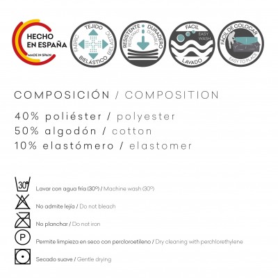 Dada su composición, estas fundas se secan con rapidez y mantienen su elasticidad, permitiendo numerosos lavados sin perder su forma o color.