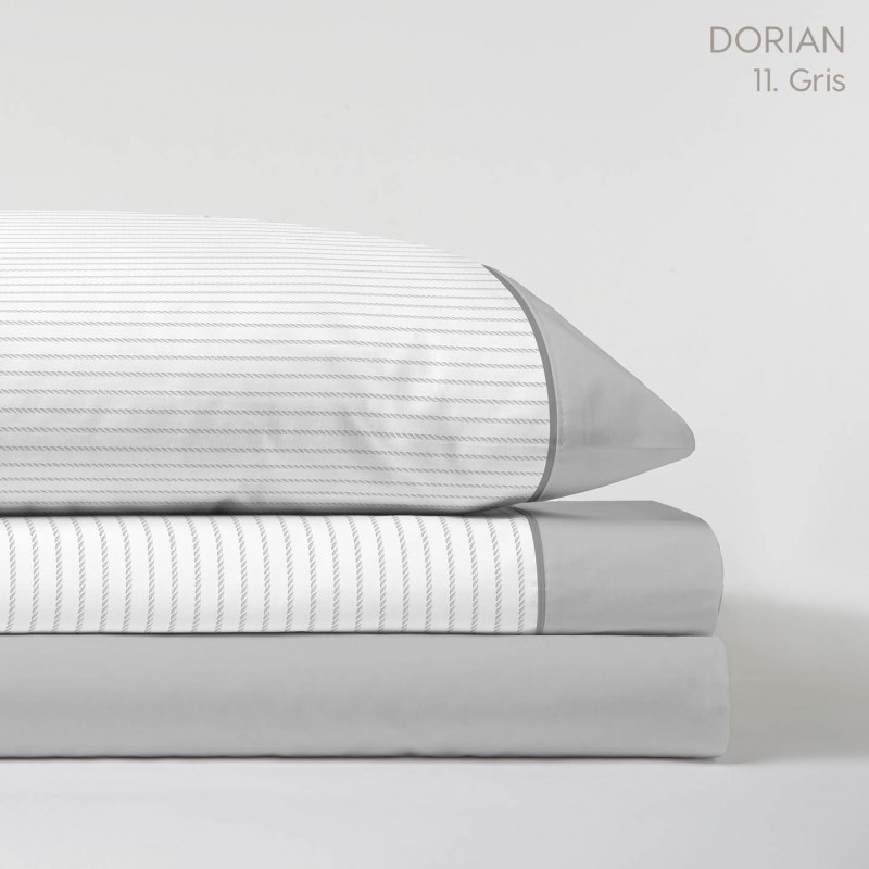 JUEGO DE SÁBANAS DORIAN C/GRIS CAMA 150CM (2 Almohadas)-100%Algodón