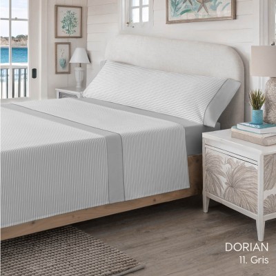 JUEGO DE SÁBANAS DORIAN C/GRIS CAMA 105CM-100%Algodón