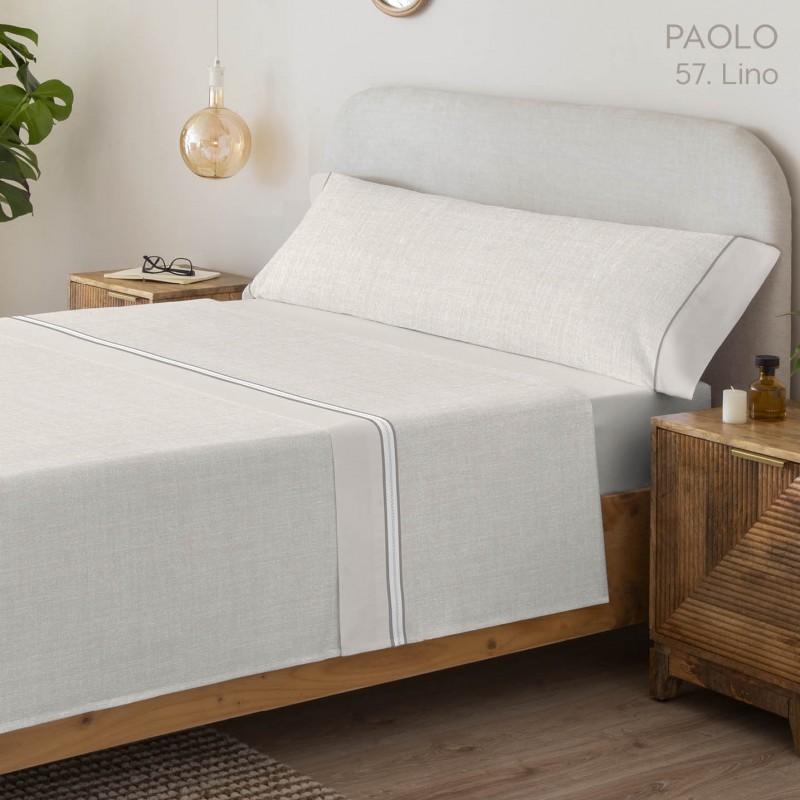 JUEGO DE SÁBANAS PAOLO C/LINO CAMA 160CM -100%Algodón