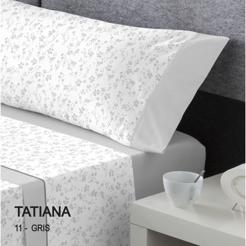 JUEGO DE SÁBANAS TATIANA C/GRIS CAMA 160CM (2 Almohadas)