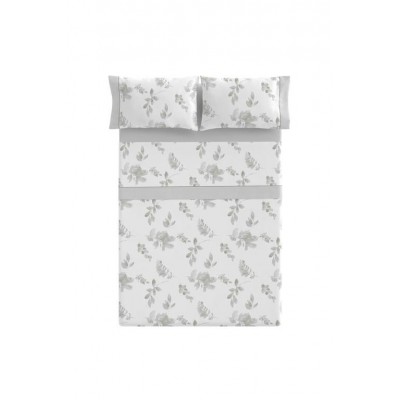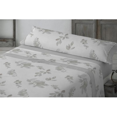 JUEGO DE SÁBANAS CON UN BONITO ESTAMPADO DE FLORES BEIGE CON EL FONDO BLANCO