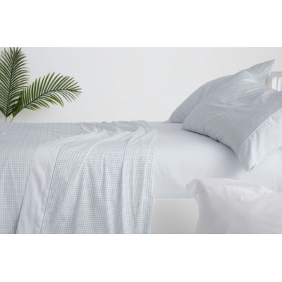 JUEGO DE SÁBANAS D.622 C/AZUL CAMA 150/160CM (2 Almohadas) - 100% algodón - CLARO DE LUNA COTTON