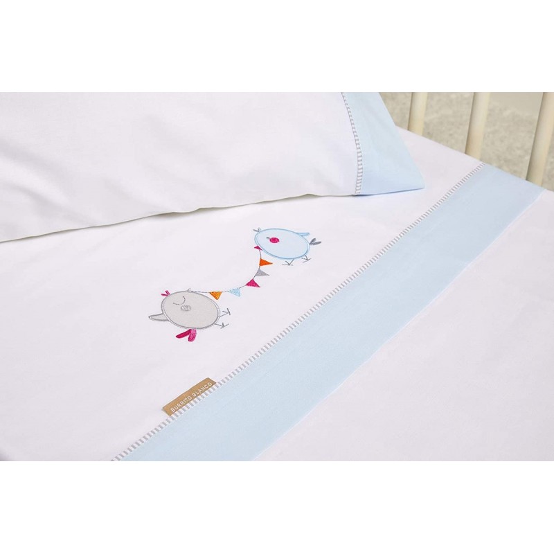 JUEGO SÁBANAS DE BEBÉ TRI 511 PAJAROS FRANELA C/01 AZUL MAXICUNA